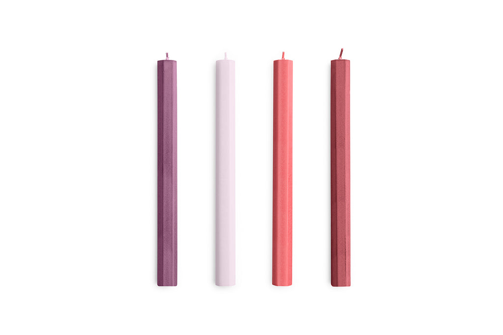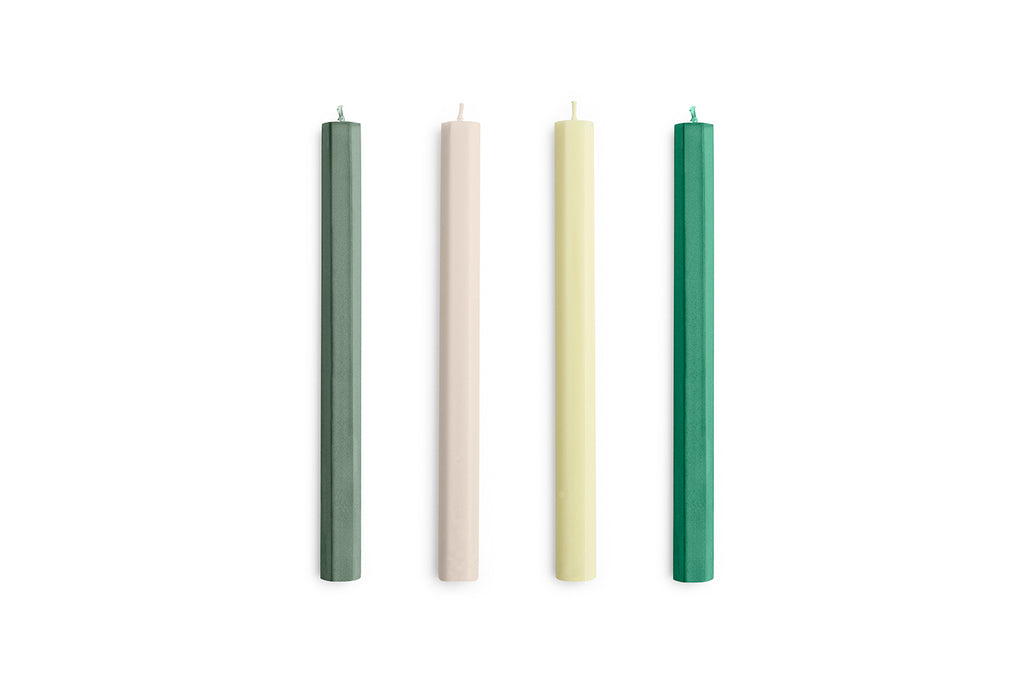 Featuring an elegant hexagonal shape and a matte finish, these colourful candles are designed to work equally well in a group or stand individually. The candles are Nordic Swan Ecolabel certified and have a burning time of approximately 7 hours. Set of 4.