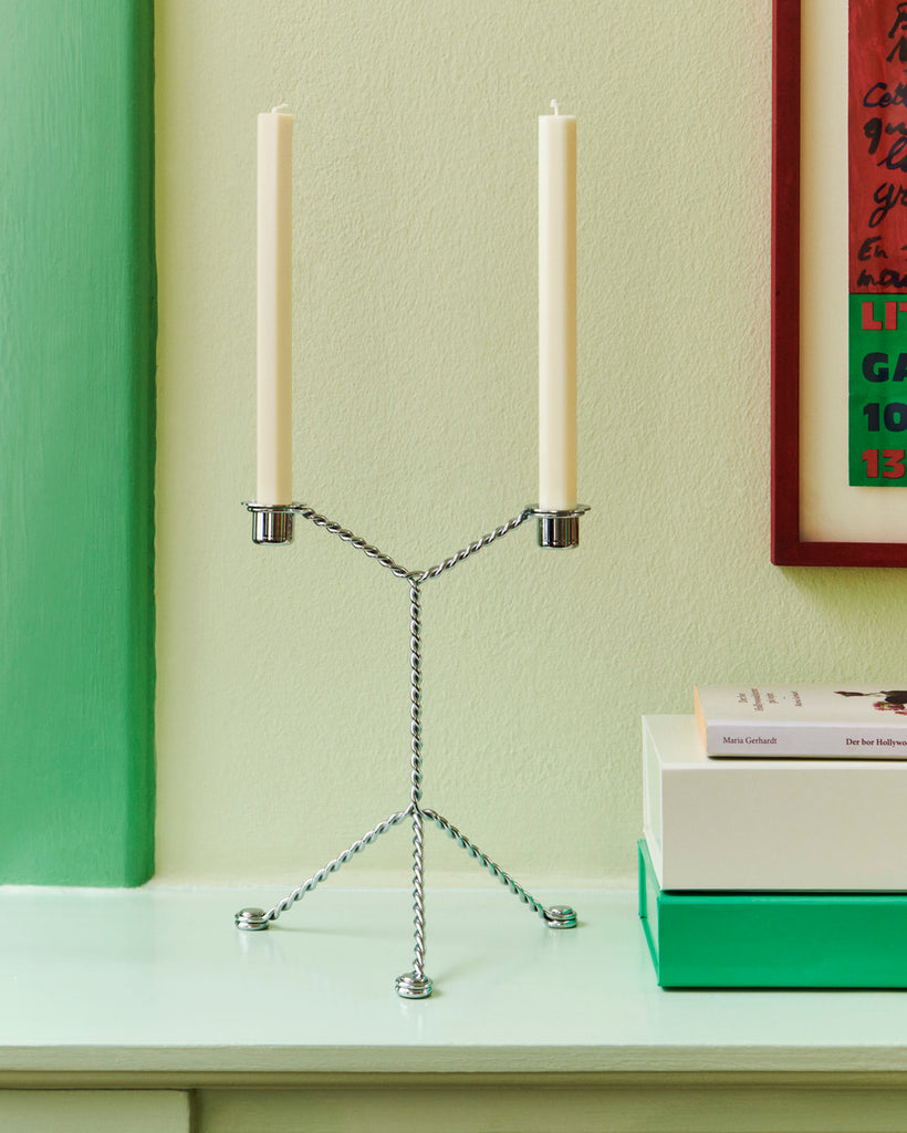 Designed by Dutch designer Chris Kabel, the Wire Candleholder is crafted from a single piece of twisted steel wire that is bent into a double candelabra. The two candleholders at the top are counterbalanced by the three angled legs, creating a simple yet elegant design that can be used on windowsills, dining tables, or other surfaces around the home.