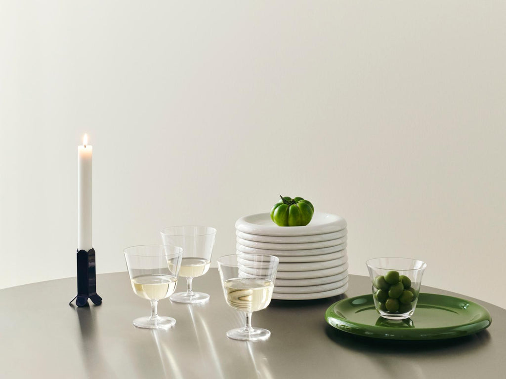 Featuring a distinctive silhouette with outwards-curving lip, the Curve Stem Glass offers a blend of simplicity and understated sophistication. Handmade from delicate 20% recycled glass, the generous bowl and elegant stem make it ideal for serving water, wine, and other drinks.