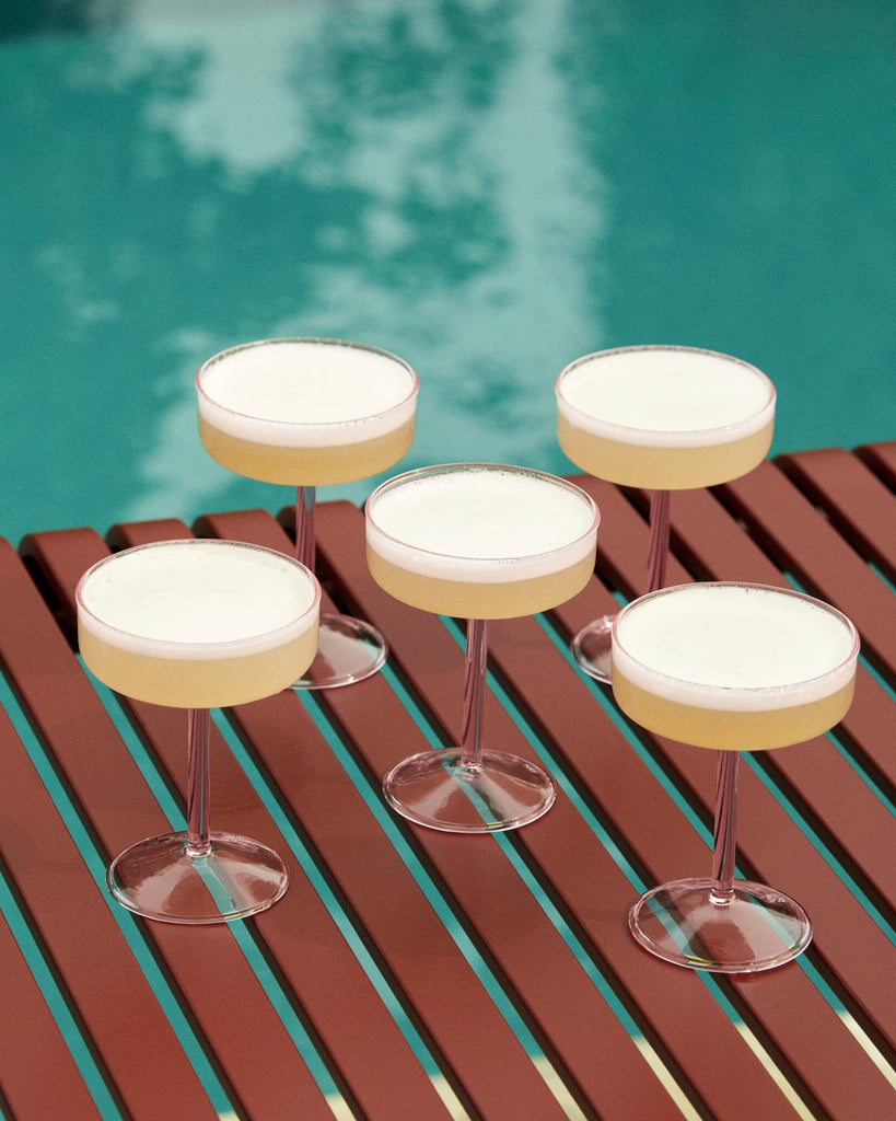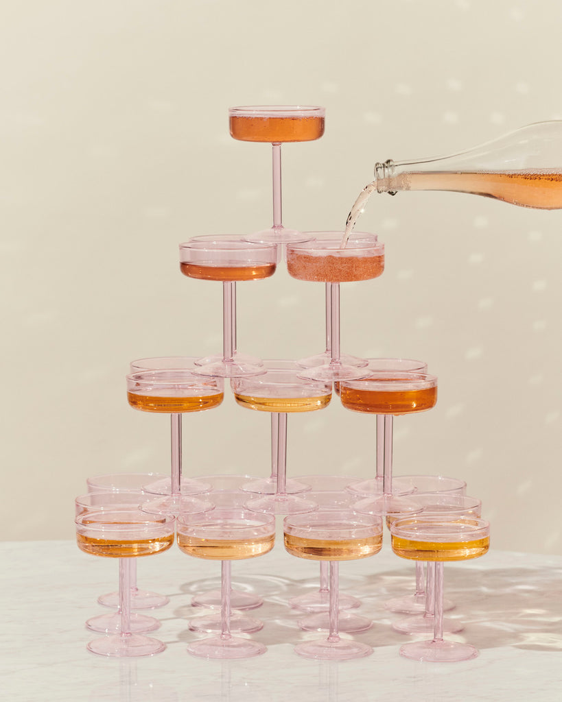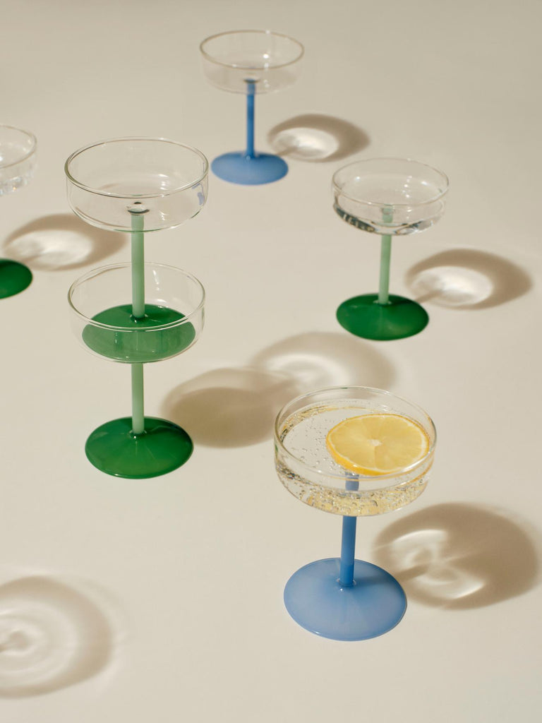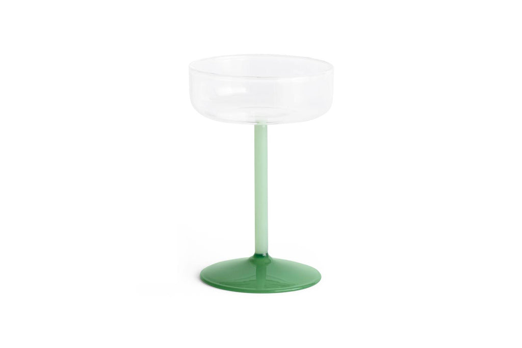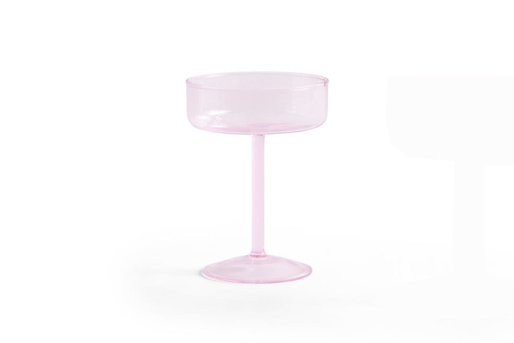 Tint Coupe Glass is a collection of elegant glasses made in tinted borosilicate glass. The classic coupe design features a long stem and shallow, broad bowl, making it suitable for serving champagne and cocktails, as well as ice cream, fruit or other desserts.