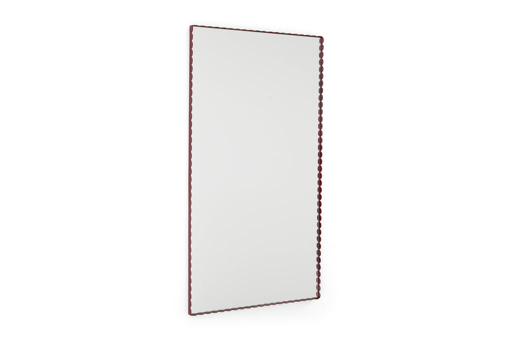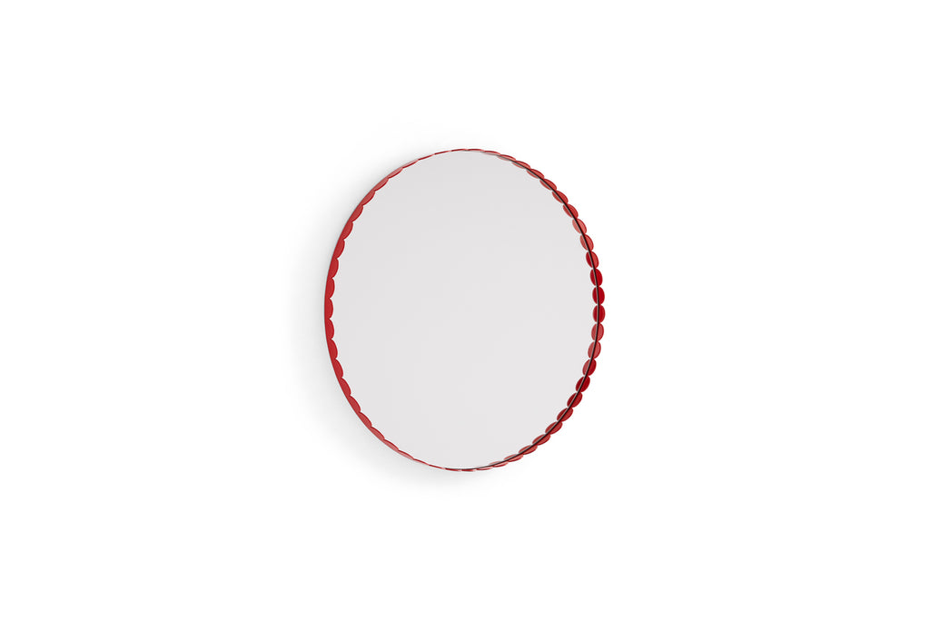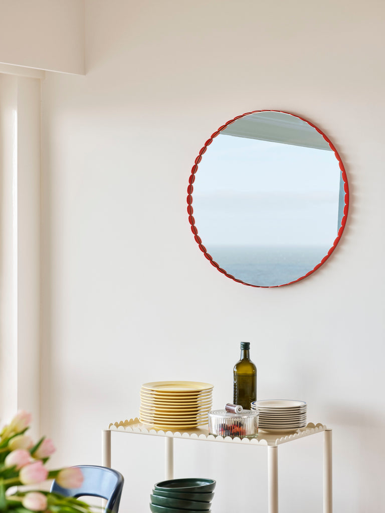 Designed by Belgian duo Muller Van Severen, Arcs Mirror is formed by a unified chain of vertical arcs that encase the mirror to create an elegant, scalloped edge. Made in stainless steel with a mirrored finish and powder coated steel in different colours, its variety of sizes and shapes ranges from a small round mirror to a large rectangular one, making it suitable for all rooms and uses.
