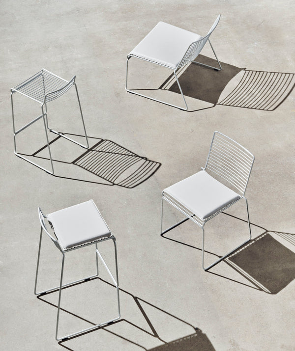 This collection by Hee Welling features sturdy steel wire that’s wrapped into neat, straight lines to create a simple, airy form. Stackable and weatherproof in a wide assortment of colours and designs.