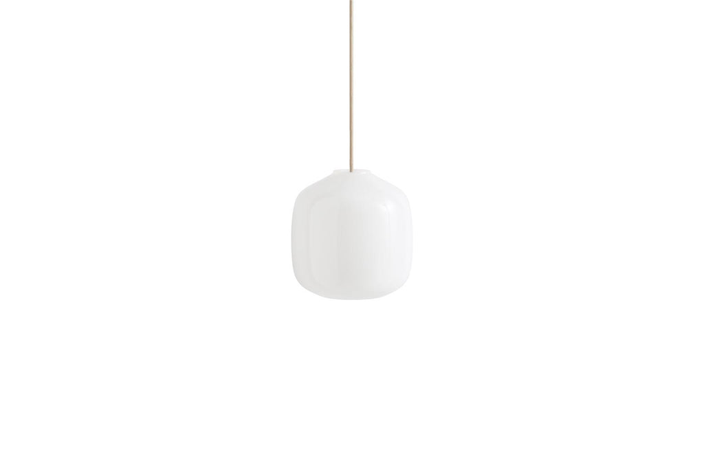 Designed for HAY by Danish design studio Aspekt Office, Buoy Glass Pendant fuses appealing aesthetics with functional design to create an ambient light that blends effortlessly into its surroundings. Comprising an opaque glass-blown shade paired with HAY’s Common Cord Set, Buoy’s naturally curved, organic silhouette offers a simple yet captivating lighting solution. The pendant lamp can be used in bedrooms, hallways, above kitchens islands or dining tables, bringing warmth and atmosphere to any interior space. Easy to mount and maintain without tools, the lampshade is available in two sizes with cord sets in different colour options.