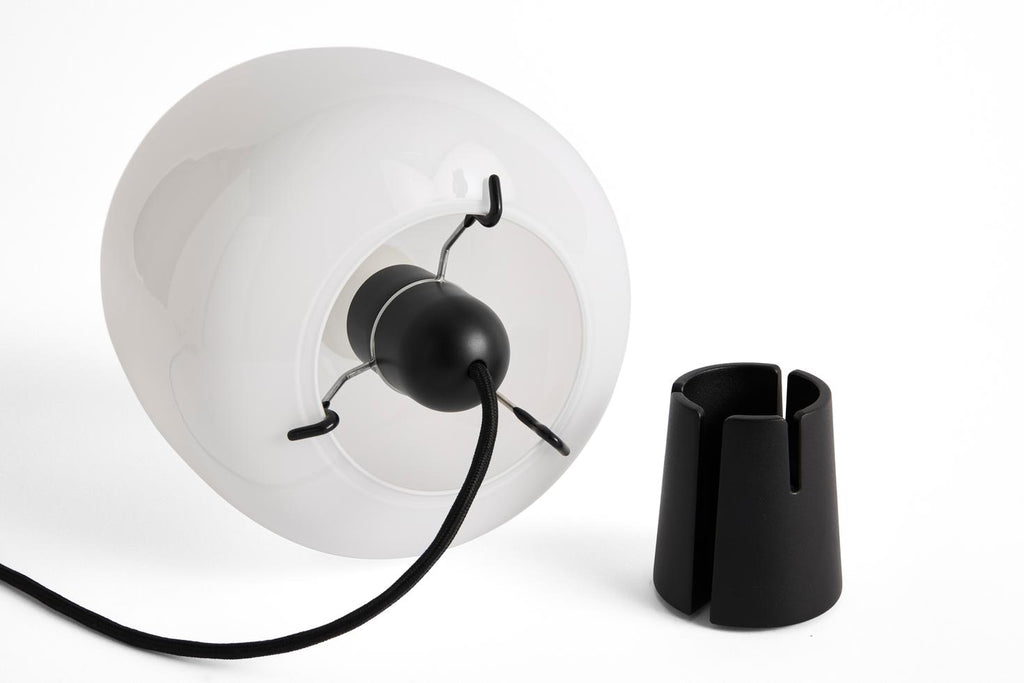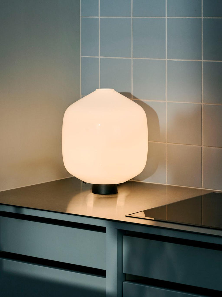 Designed for HAY by Danish design studio Aspekt Office, Buoy Glass Table Lamp fuses appealing aesthetics with functional design to create an ambient light that blends effortlessly into its surroundings. Comprising an opaque glass-blown shade paired with HAY’s Common Cord Set, Buoy’s naturally curved, organic silhouette offers a simple yet captivating lighting solution. The table lamp provides directional light on window sills, shelves, and other surfaces around the home, bringing warmth and atmosphere to any interior space. Easy to fit and maintain without tools, the lampshade is available in two sizes and black cord set.
