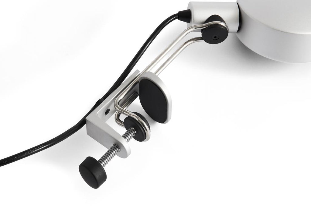 The Cupola Clip Lamp is an adjustable lamp that explores the possibilities of providing optimal movement using minimal mechanisms. The circular 360° rotating head, pivoting mount, and clamp offer an elegant yet simple design, while offering a functional and highly technical lighting solution. Crafted in durable aluminium with a natural anodised finish, the lamp balances a raw, industrial expression with the distinctive, rounded lines. The flexible lamp can be clipped onto shelves, desks, and other surfaces to provide localised, directional light to suit specific needs.