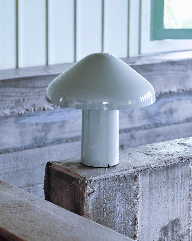 The Pao collection of lamps is an exciting collaboration with Japanese designer Naoto Fukasawa. Both the lamp’s base and shade are constructed from a resistant polycarbonate, with a smooth, high gloss finish. The lamp’s light source is concealed inside the shade, behind an opal polycarbonate diffuser, providing an efficient diffused downlight, with a warm, homely glow. The compact, battery-operated design enables the lamp to be moved to different rooms around the house, or taken into the garden and other outside spaces.