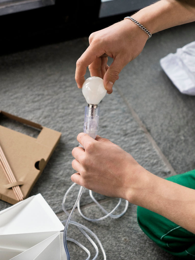 LIGHT SOURCE / Not included. Recommended: LED E14 (A15) (EU) | LED E12 (US. included). 5-8W (max. 8W). 500-800lm. 2700K warm white