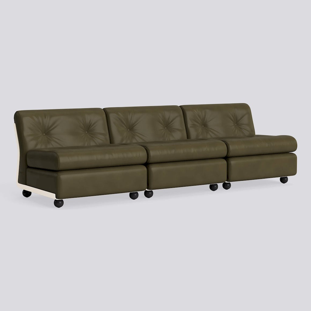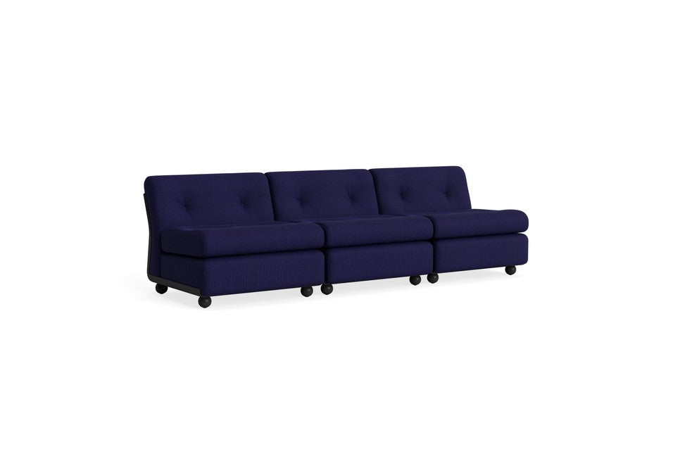 Originally designed by Mario Bellini in 1966 and reissued by HAY, Amanta Sofa embodies the essence of innovative mid-century Italian design. A modular seating solution defined by its sculptural design and organic, low-slung silhouette, Amanta continues to stand out for its timeless ingenuity. With modular units that work alone or together, the sofa’s flexible design is an example of the designer’s multidisciplinary expertise in form and function. Crafted with architectural precision from at least 99% post-consumer recycled ABS, the shell is complemented by 94% biomass-balanced foam cushions that deliver ergonomic support, with all components designed for disassembly. Amanta's enduring aesthetics and ability to adapt to interior spaces make it a versatile choice for a wide range of domestic and public settings. Available in different shell colours with a variety of fabric and leather upholstery options as a single module or in pre-configured 2-, 3-, or 4- module seater variants.