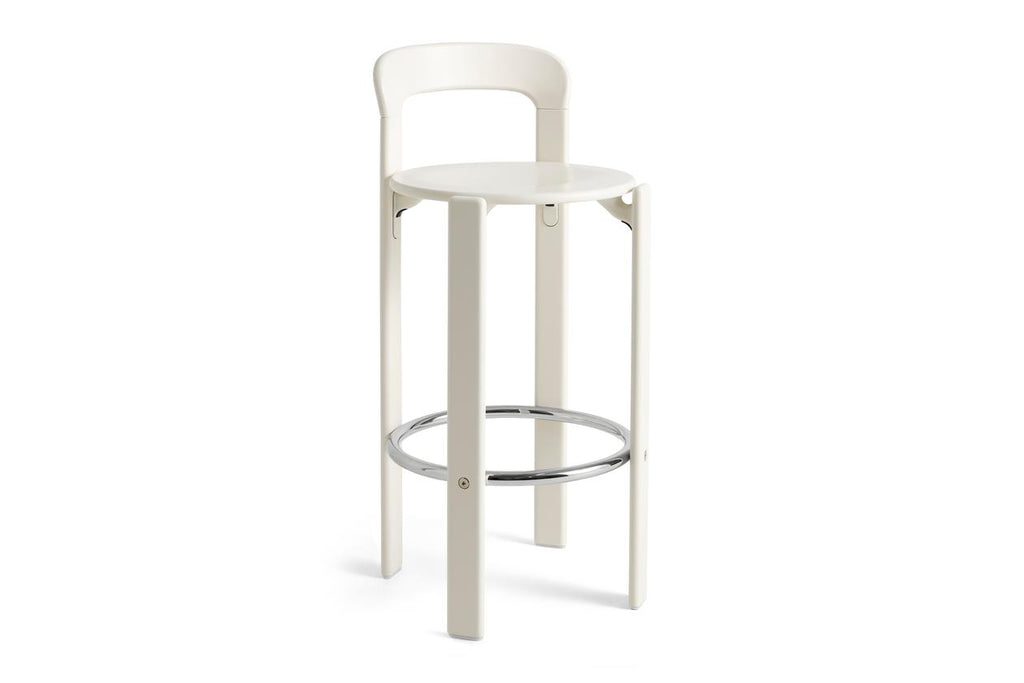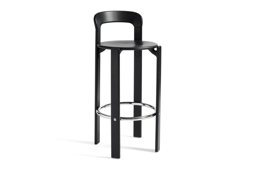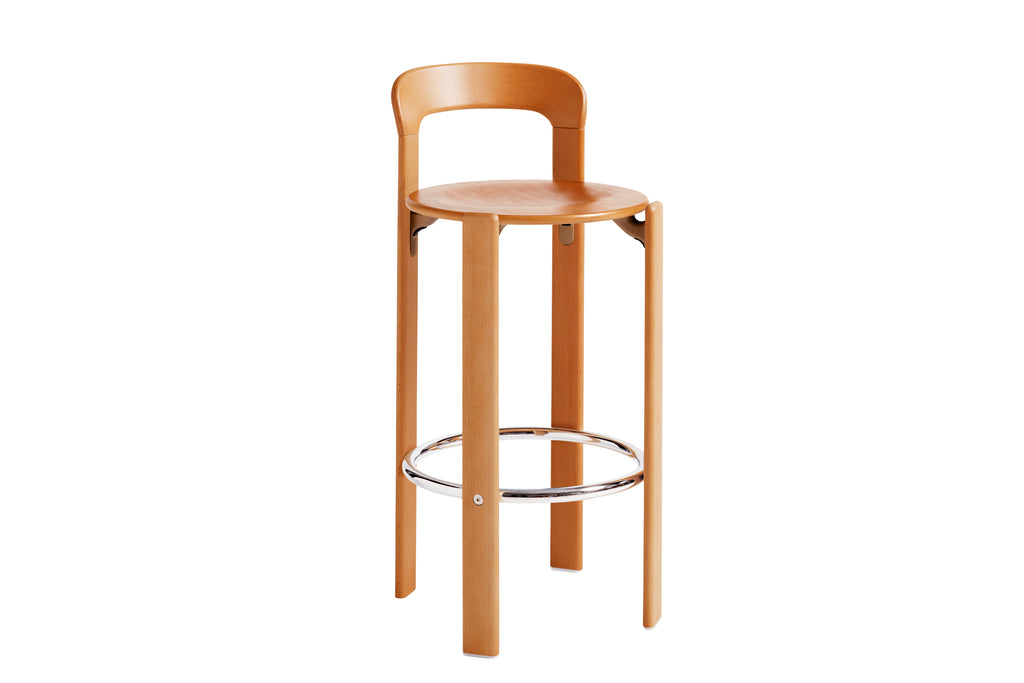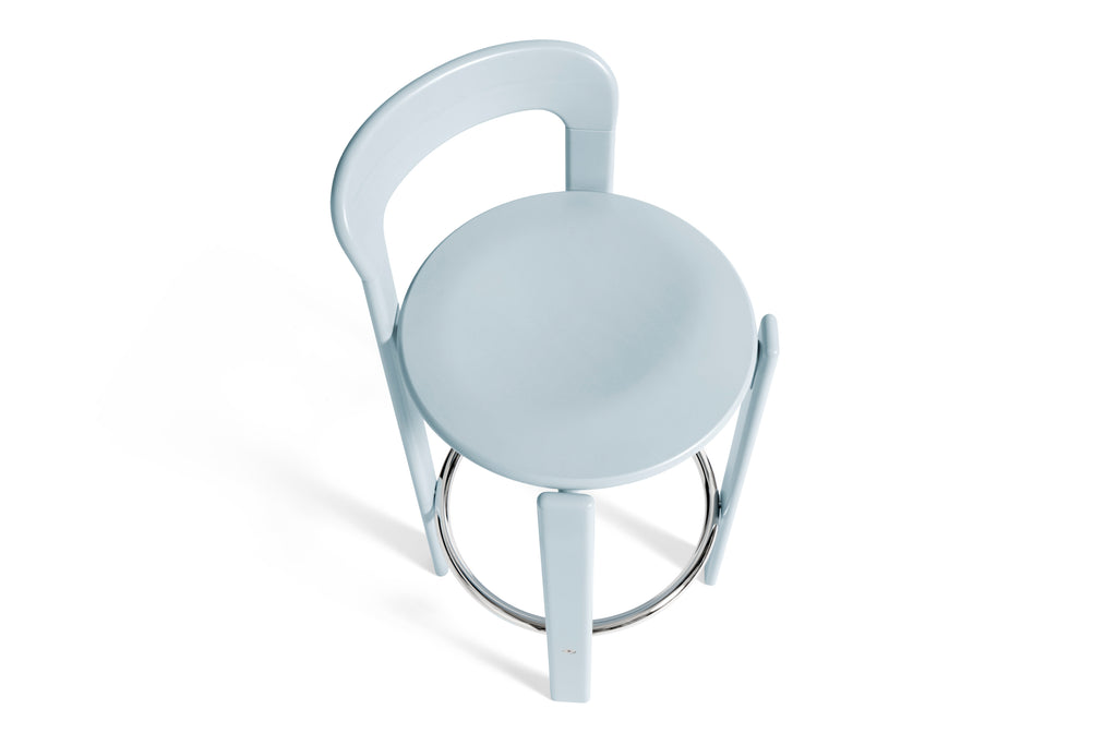 Based on the original Rey Collection designed by Swiss designer Bruno Rey in 1971, HAY has teamed up with Dietiker to relaunch the Rey Bar Stool. Featuring Dietiker’s unique screwless wood-to-metal connection, the iconic barstool has an uncluttered silhouette with tall, angled legs that balance the distinctively rounded edges. Its simplicity, strength and solid construction give it a timeless quality that makes it suitable for using in a wide variety of domestic, public or corporate settings. Made in solid wood with a chrome footrest, it is available in original colours, as well as new tones and upholstered seat options selected by HAY.