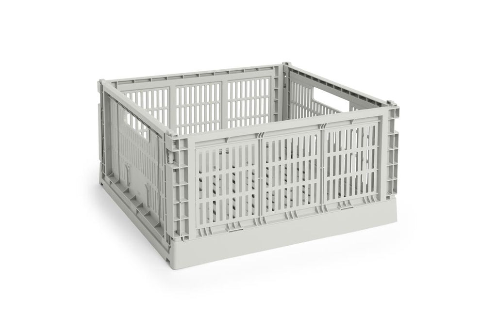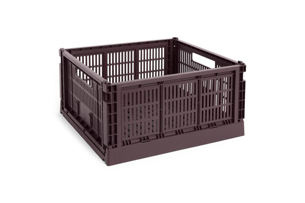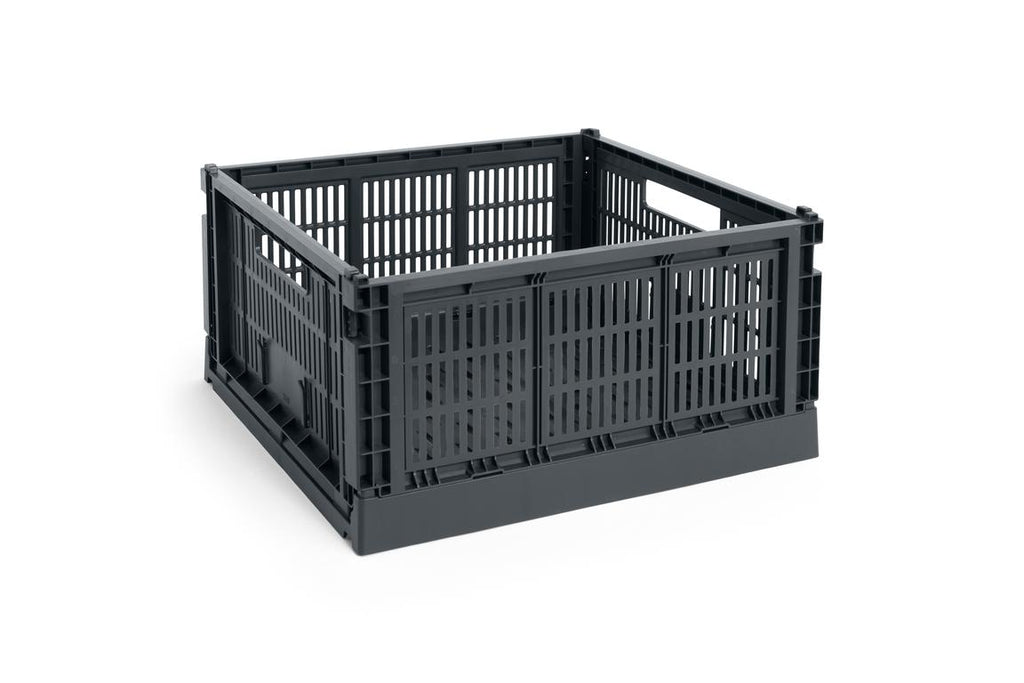 HAY’s Colour Crate is a series of handy, adaptable storage boxes with a perforated design. Made from 100% recycled post-consumer plastic, these stackable crates come in cubes, squares, and rectangles in a wide variety of colours and sizes. They can be supplemented with lids and wheels, and placed inside each other in multiple configurations, making them ideal for storage, display, and even innovative furniture items. Their multifunctionality, combined with their ability to be folded flat when not in use, makes them a versatile and space-saving storage solution.