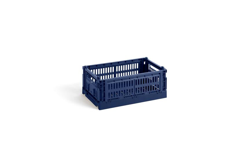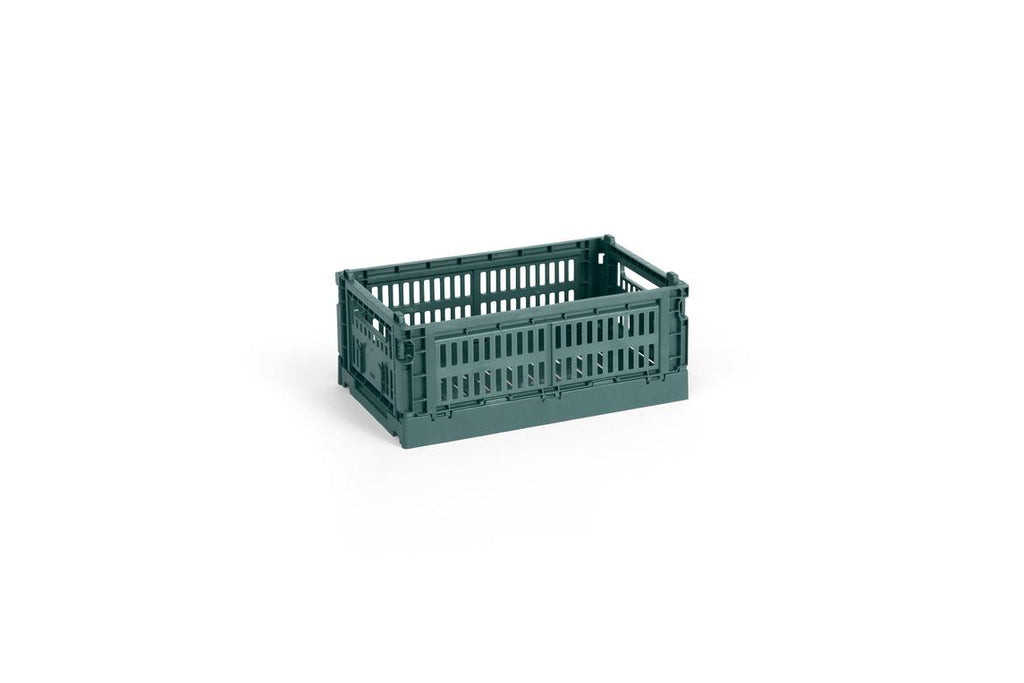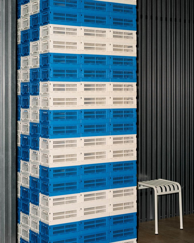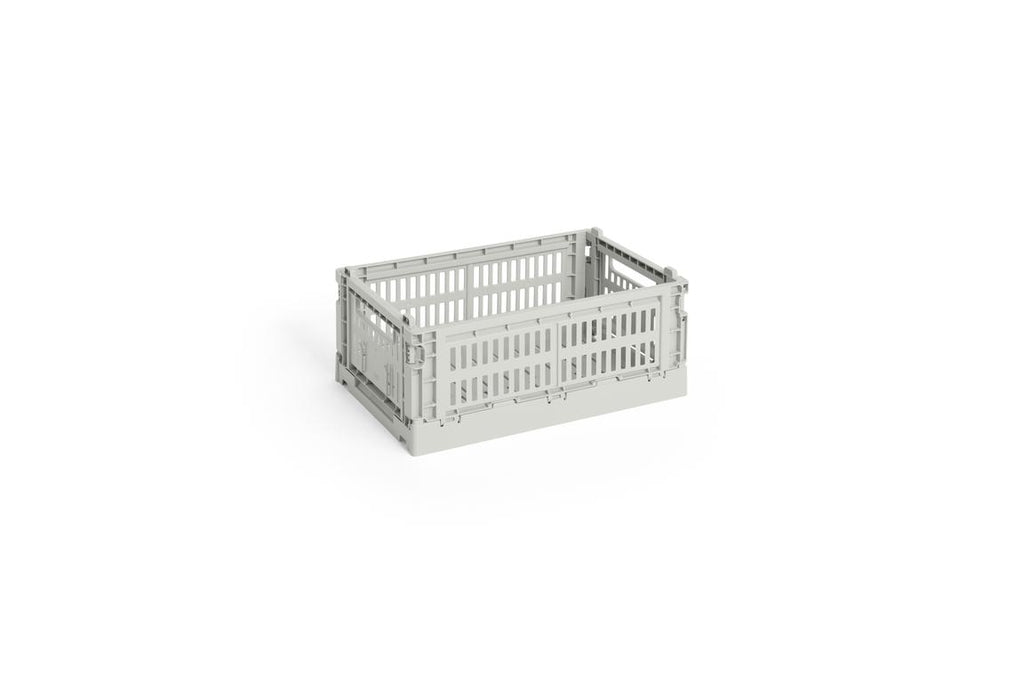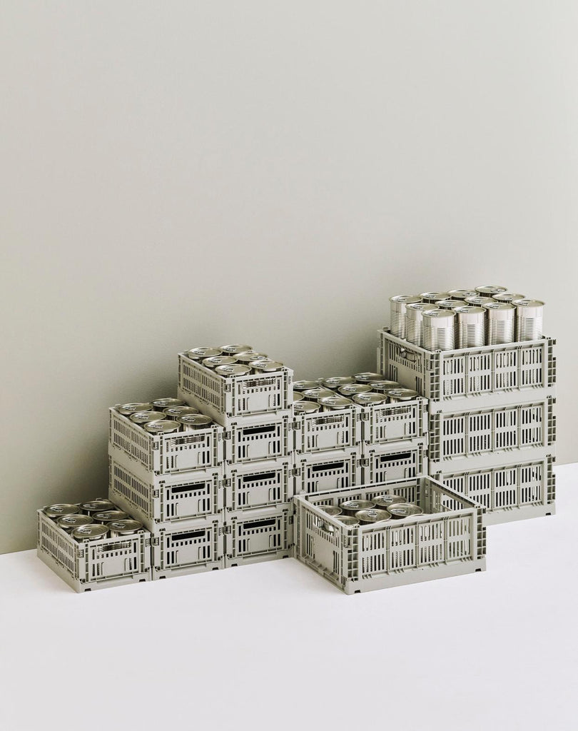 HAY’s Colour Crate is a series of handy, adaptable storage boxes with a perforated design. Made from 100% recycled post-consumer plastic, these stackable crates come in cubes, squares, and rectangles in a wide variety of colours and sizes. They can be supplemented with lids and wheels, and placed inside each other in multiple configurations, making them ideal for storage, display, and even innovative furniture items. Their multifunctionality, combined with their ability to be folded flat when not in use, makes them a versatile and space-saving storage solution.