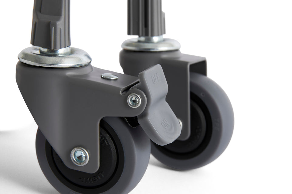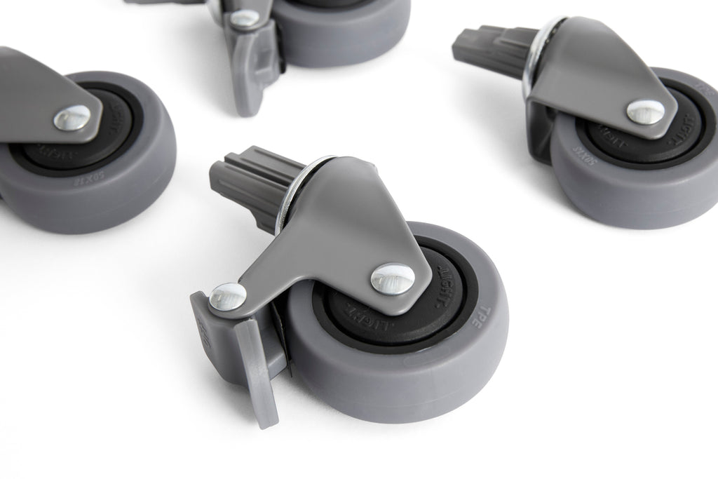Designed for using with HAY Colour Crates, the Colour Crate Wheels elevate the container, making it easy to move around as well as adding extra function and storage possibilities. Featuring a simple push-in design and two stopper wheels, the Colour Crate Wheels are simple to mount and effective to use.