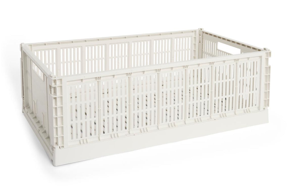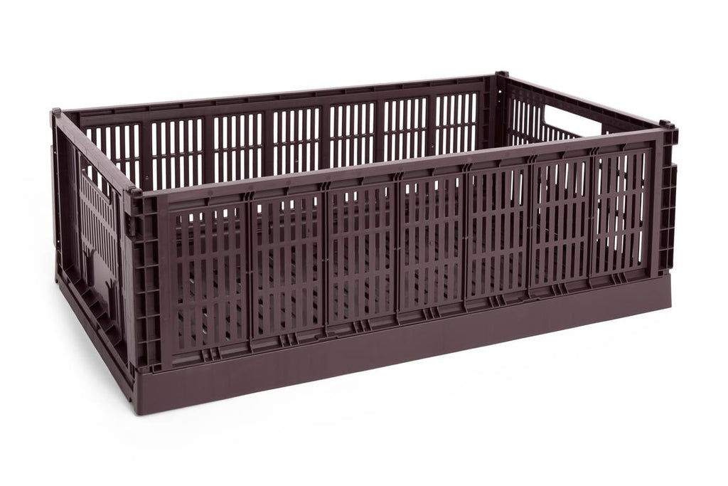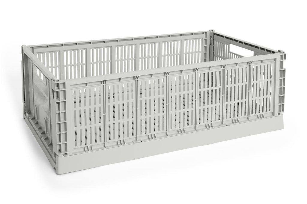 HAY’s Colour Crate is a series of handy, adaptable storage boxes with a perforated design. Made from 100% recycled post-consumer plastic, these stackable crates come in cubes, squares, and rectangles in a wide variety of colours and sizes. They can be supplemented with lids and wheels, and placed inside each other in multiple configurations, making them ideal for storage, display, and even innovative furniture items. Their multifunctionality, combined with their ability to be folded flat when not in use, makes them a versatile and space-saving storage solution.