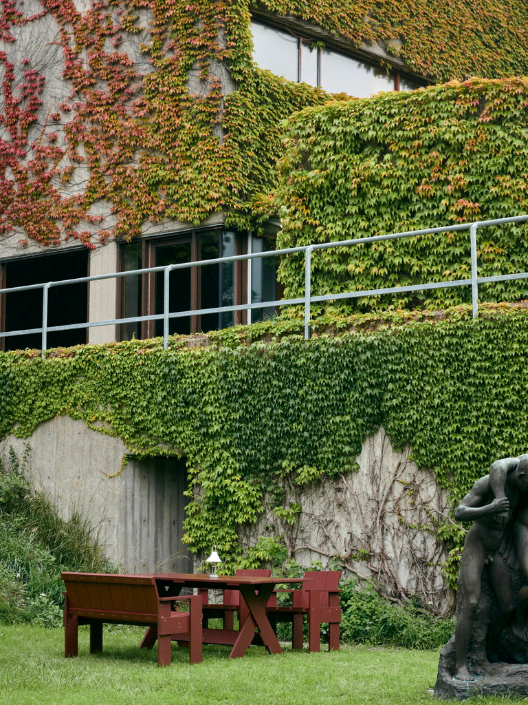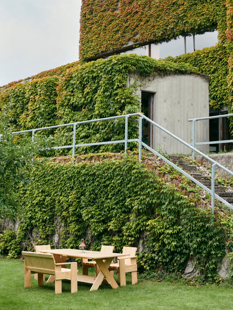 Initially designed to make use of surplus wooden shipping crates by Dutch architect and designer Gerrit Rietveld in 1934, the Crate Collection has been relaunched in a Rietveld Originals x HAY collaboration. Made with respect for the original design, the Crate Dining Bench shares the same precisely balanced proportions and transparent construction to minimise production costs and optimise the assembly process. The classic bench design features a gently sloping back and seat with supportive armrests, its simplicity and spatial design mirroring the designer’s architectural principles – providing functionality and comfort without absorbing space. Crafted in solid pine, with a water-based lacquered finish in different colour options, the Crate Dining Bench is suitable for a wealth of outdoor settings, and can be supplemented with optional seat cushions in selected textiles for extra comfort.