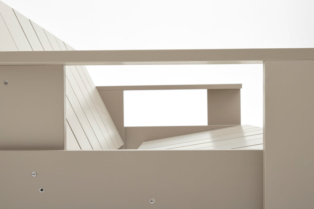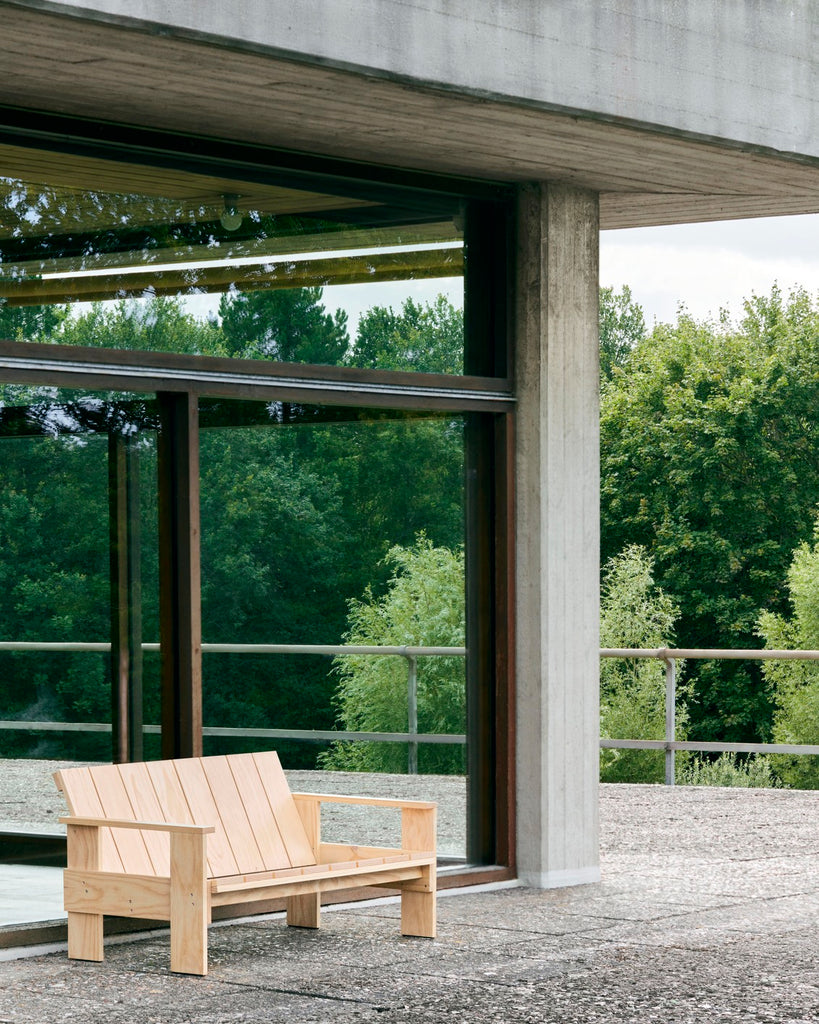 Initially designed to make use of surplus wooden shipping crates by Dutch architect and designer Gerrit Rietveld in 1934, the Crate Collection has been relaunched in a Rietveld Originals x HAY collaboration. Made with respect for the original design, the Crate Lounge Sofa shares the same precisely balanced proportions and transparent construction to minimise production costs and optimise the assembly process. The sofa features low proportions with a gently sloping back and seat with supportive armrests, its simplicity and spatial design mirroring the designer’s architectural principles – providing functionality and comfort without absorbing space. Crafted in solid pine, with a water-based lacquered finish in different colour options, the Crate Lounge Sofa is suitable for a wealth of outdoor settings, and can be supplemented with optional seat cushions in selected textiles for extra comfort.