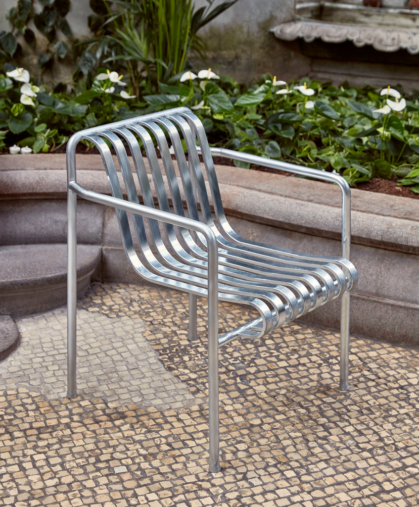 Designed by French brothers Ronan and Erwan Bouroullec, Palissade is a collection of outdoor furniture for HAY in powder coated or hot galvanised steel. United by a common principle of symmetrical geometry, the Palissade collection is engineered to reproduce the same visual simplicity and core strength throughout. Designed in colour and form to integrate effortlessly into a natural landscape or urban setting, Palissade is intended to be used over a longer period of time and become more beautiful over the years. The collection is suited to a wide variety of environments, from cafés and restaurants to gardens, terraces and balconies.