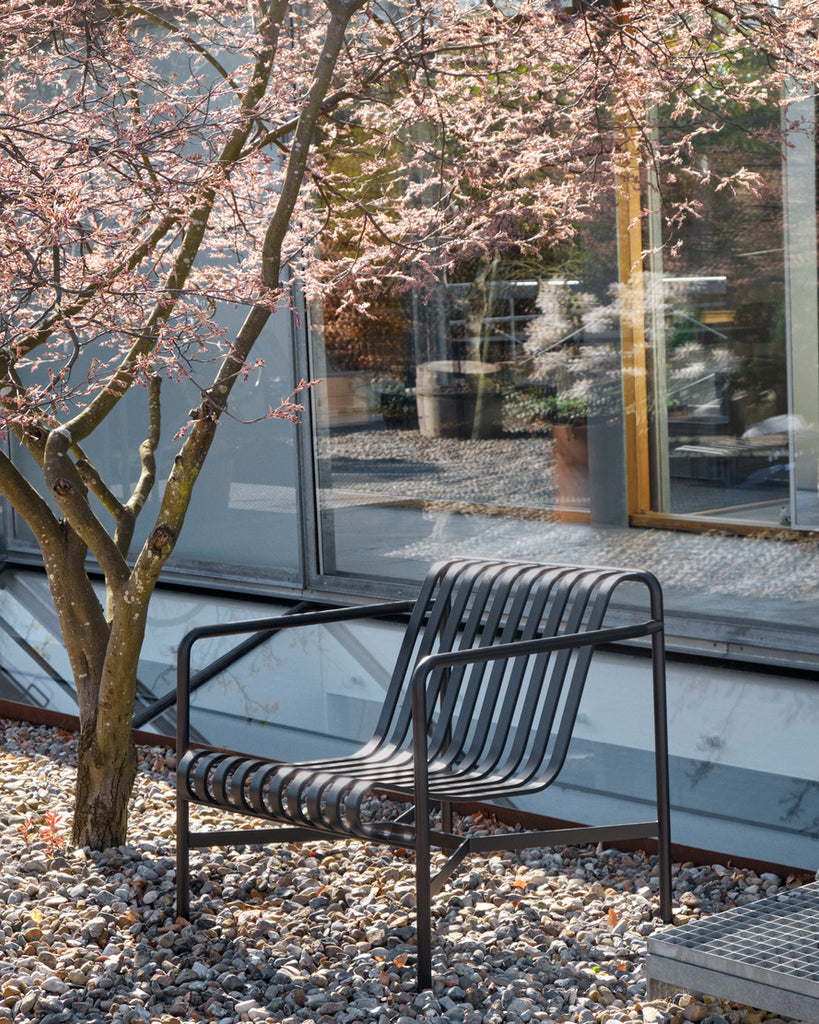 Designed by French brothers Ronan and Erwan Bouroullec, Palissade is a collection of outdoor furniture for HAY in powder coated or hot galvanised steel. United by a common principle of symmetrical geometry, the Palissade collection is engineered to reproduce the same visual simplicity and core strength throughout. Designed in colour and form to integrate effortlessly into a natural landscape or urban setting, Palissade is intended to be used over a longer period of time and become more beautiful over the years. The collection is suited to a wide variety of environments, from cafés and restaurants to gardens, terraces and balconies.
