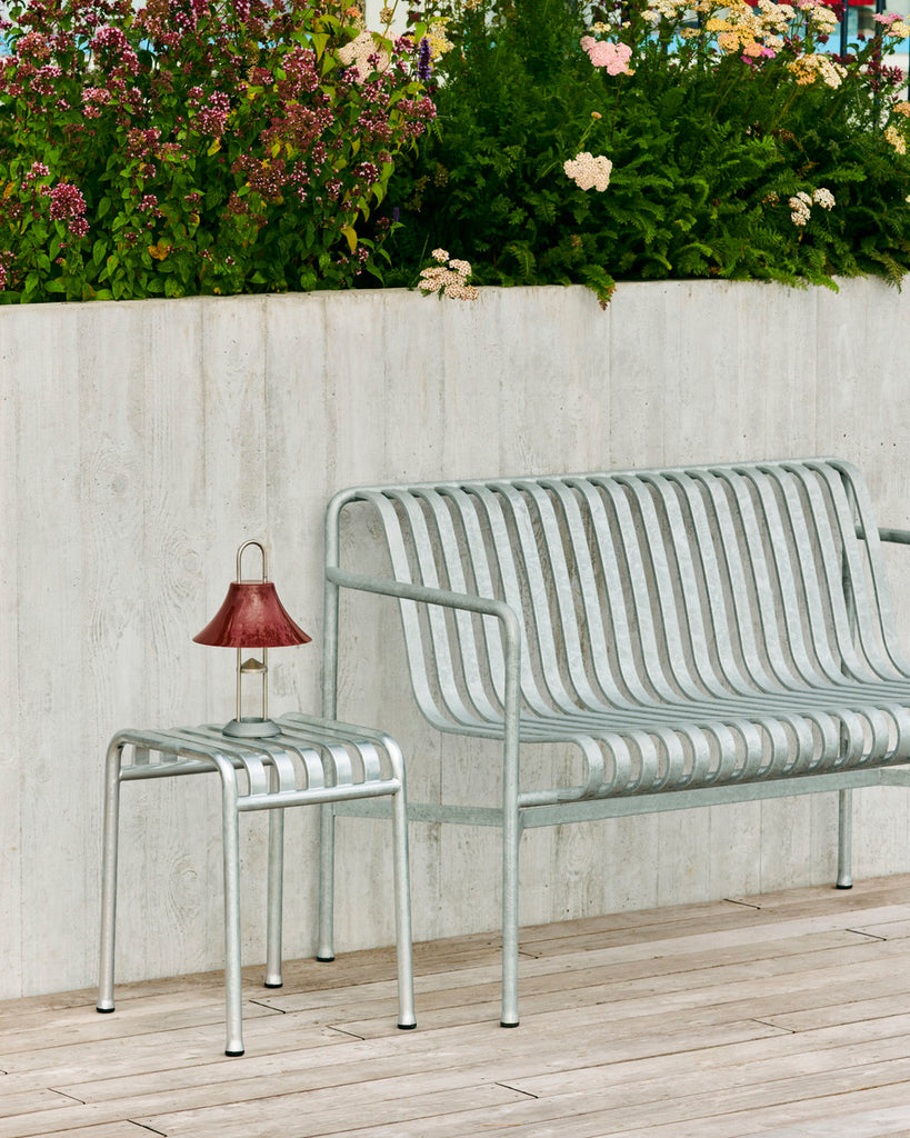 Designed by French brothers Ronan and Erwan Bouroullec, Palissade is a collection of outdoor furniture for HAY in powder coated or hot galvanised steel. United by a common principle of symmetrical geometry, the Palissade collection is engineered to reproduce the same visual simplicity and core strength throughout. Designed in colour and form to integrate effortlessly into a natural landscape or urban setting, Palissade is intended to be used over a longer period of time and become more beautiful over the years. The collection is suited to a wide variety of environments, from cafés and restaurants to gardens, terraces and balconies.