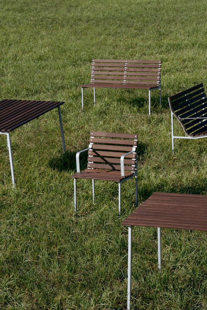 Designed for HAY by Erwan Bouroullec, the Traverse Lounge Bench is part of an outdoor furniture collection designed to naturally blend in wherever it is placed. Comprising a die-cast aluminium frame with slatted seat in heat-treated ash, the bench combines a robust construction with an inviting expression that naturally patinates to make it more beautiful over time. With its well-balanced aesthetics and ergonomic design, the Traverse Lounge Bench can be used with other Traverse furniture for relaxing and socialising in a wide range of private and public spaces. Available with or without armrests.