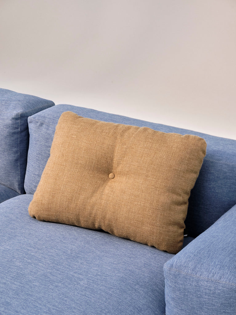 Based on the original HAY classic, the Dot Cushion XL Mini Dot features a large, rectangular shape with rounded corners, and the characteristic covered button in a miniature version.