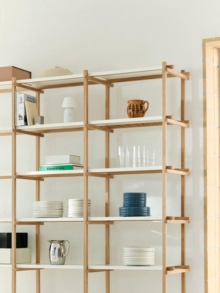 Woody was originally designed for inventory use, but after much demand this ladder-inspired shelving system was soon put into commercial production. Woody’s beauty lies in its open simplicity and industrial expression that leaves construction parts and joint details exposed. Woody is available in several different sizes and can be used as a free-standing shelving system, against a wall or as a room divider.