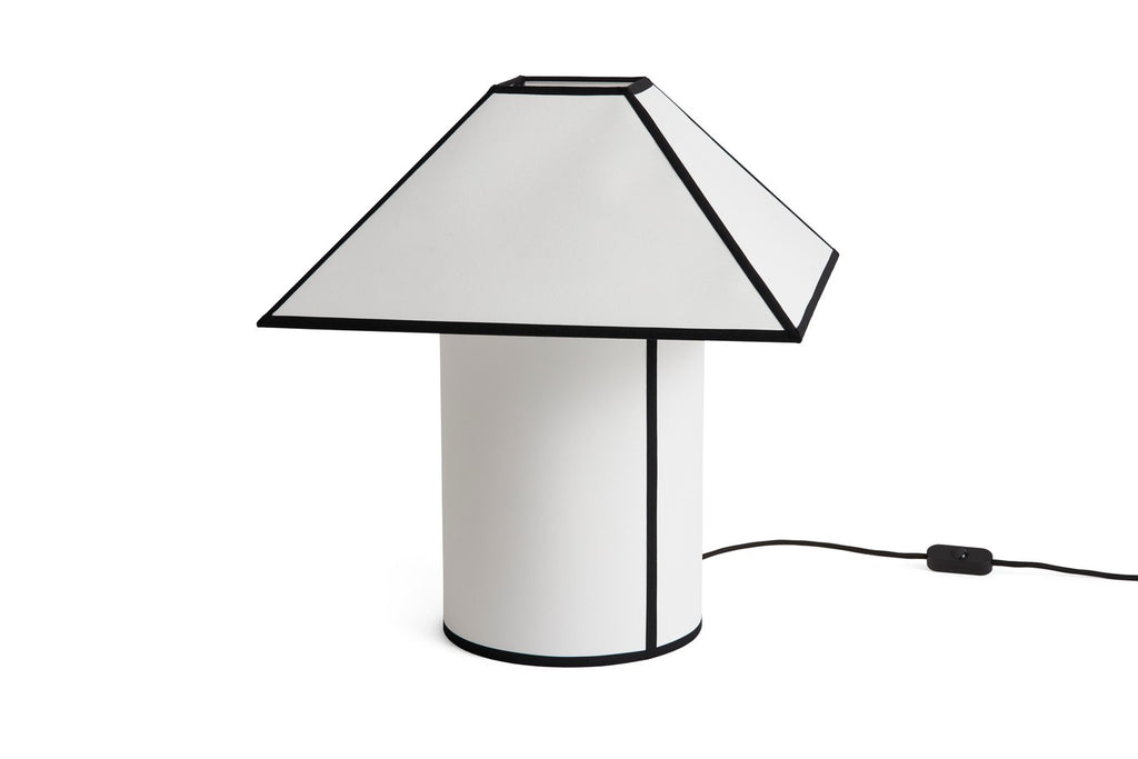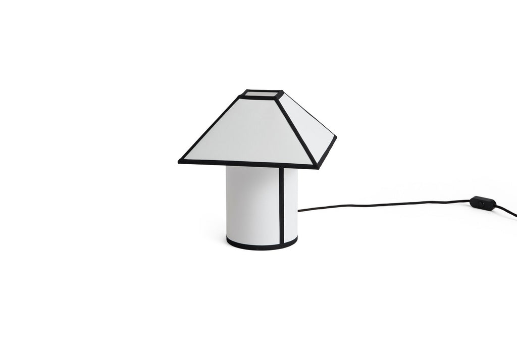 Designed for HAY by Ana Kraš, the Ava Pyramid Table Lamp combines an archetypal lamp shape with a bold, graphic design, creating a contemporary take on a classic table lamp. Crafted from ECOPETTM derived from recycled PET plastic, the semi-translucent base and shade have a textured quality that is offset by the contrasting fabric piping. The lamp’s simple yet striking visual presence and soft, ambient glow it to be seamlessly integrated into numerous home spaces – on shelves and windowsills in bedrooms, halls, living, and dining areas. Ava Pyramid Table Lamp is accompanied by HAY’s Common Cord Set and uses a replaceable standard retro fit LED dimmable bulb.