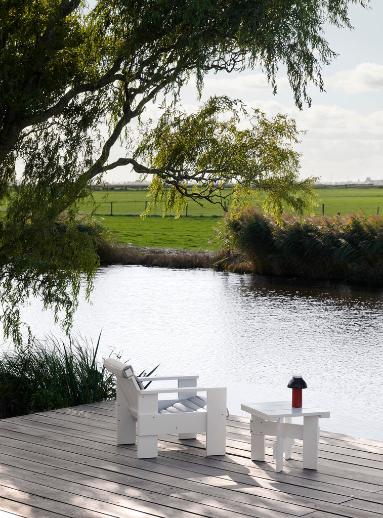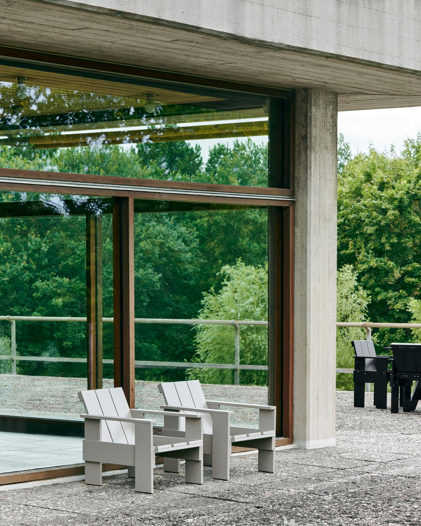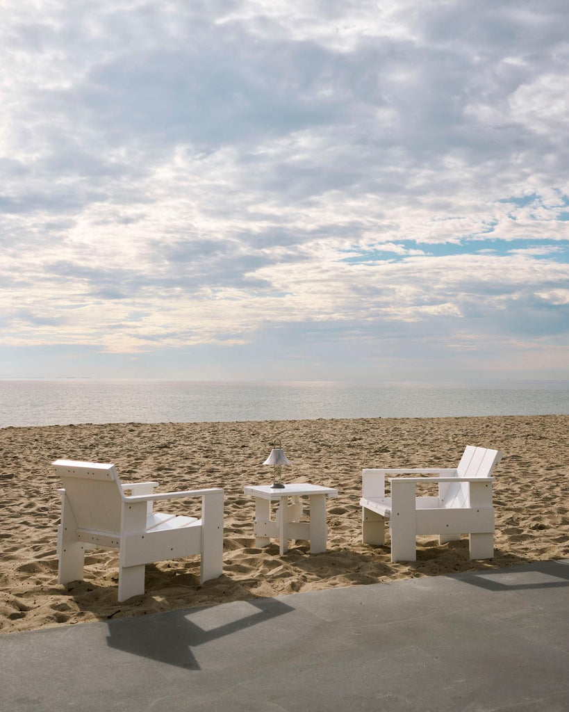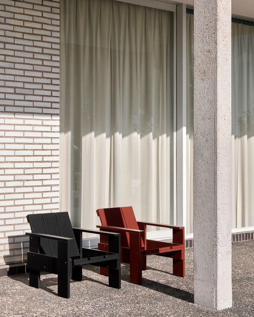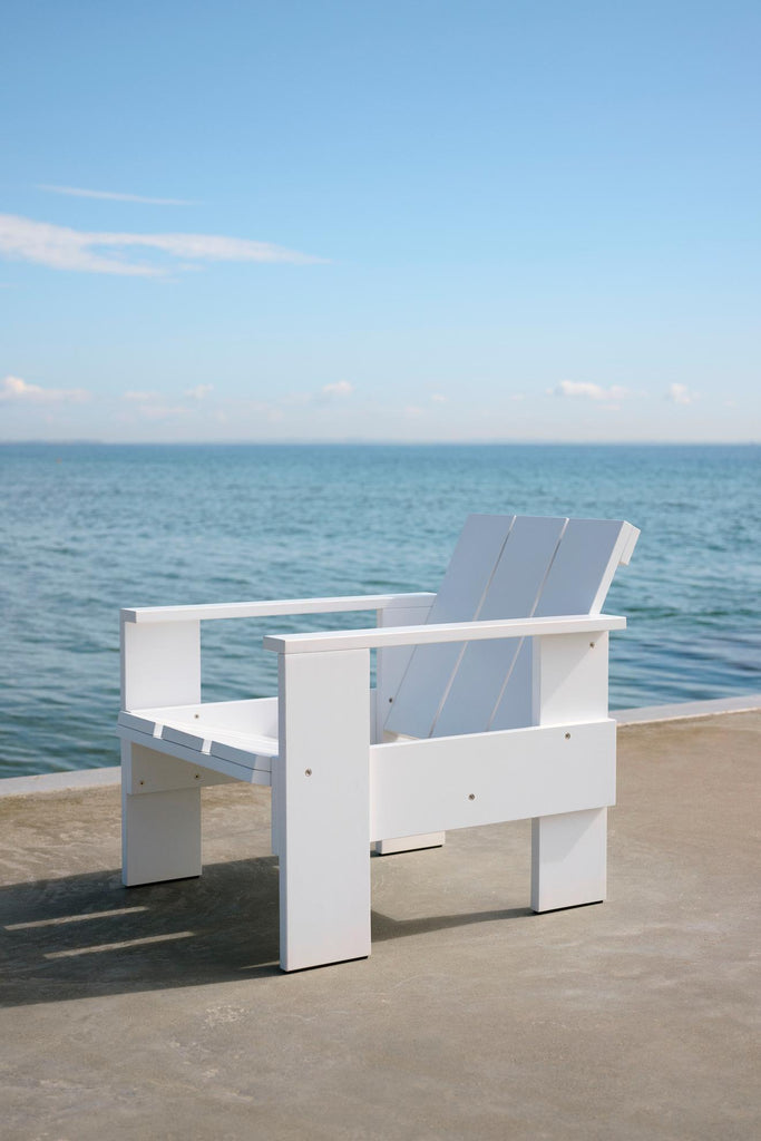 Initially designed to make use of surplus wooden shipping crates by Dutch architect and designer Gerrit Rietveld in 1934, the Crate Collection has been relaunched in a Rietveld Originals x HAY collaboration. Made with respect for the original design, the Crate Lounge Chair shares the same precisely balanced proportions and transparent construction to minimise production costs and optimise the assembly process. Featuring low proportions with a gently sloping back and seat with supportive armrests, the chair’s simplicity and spatial design mirrors the designer’s architectural style – providing functionality and comfort without absorbing space. Crafted in solid pine, with a water-based lacquered finish in different colour options, the Crate Lounge Chair is suitable for a wealth of outdoor settings, and can be supplemented with optional seat cushions in selected textiles for extra comfort.