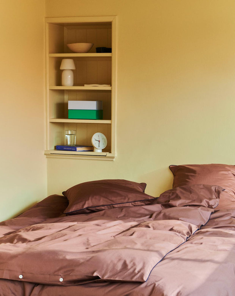 Crafted from organic cotton with a high thread count for a silky, more luxurious feel, Outline Duvet Cover offers exceptional comfort and softness, while the curated colours and elegant contrast trim elevate the bedroom aesthetics. OEKO-TEX® STANDARD 100 cert. No. 21.HTR.81980 HOHENSTEIN HTTI.